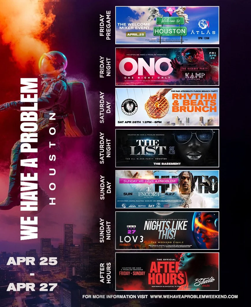 Pack your bags and turn up the vibes! We Have a Problem Weekend is not just an event—it’s a full-blown adventure. Designed for the elite socialite that craves connection, culture, and cutting-edge nightlife, this traveling weekend drops you into the heart of the hottest cities for an unforgettable experience.
